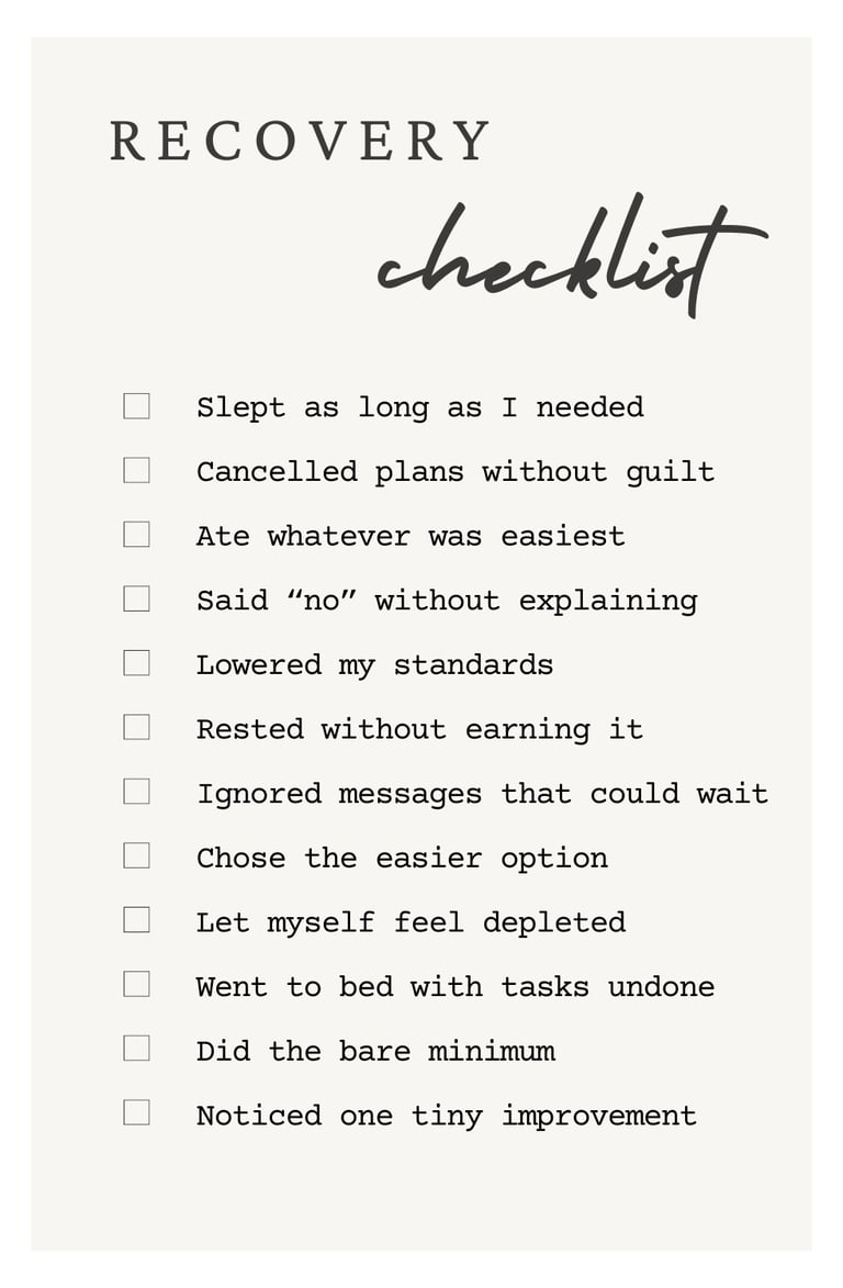 You'll know you're improving when small tasks stop feeling mountainous. When you can shower without needing a nap after. When you can watch something and actually follow the plot instead of staring through the screen.