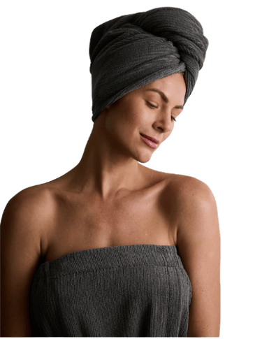 Bath Wrap $90 • Hair Towel $60 • Shop Cozy Earth
