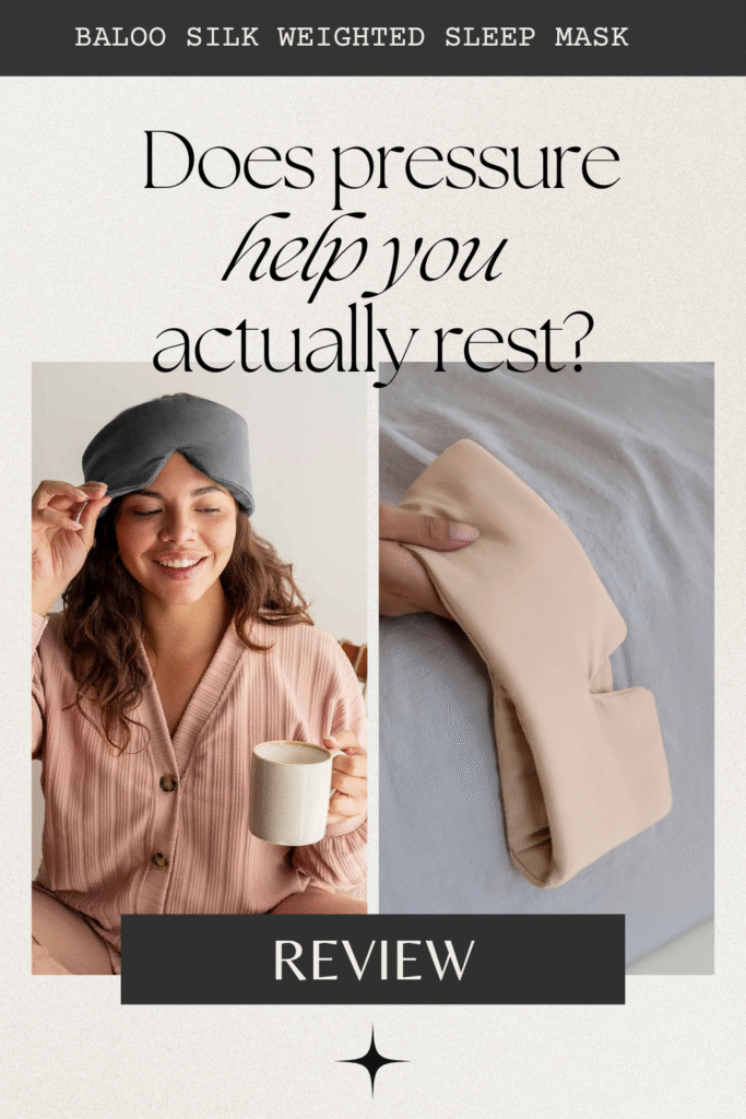 The Baloo Weighted Sleep Stone Mask does what it claims: blocks light completely, adds calming pressure, stays put through the night (if you’re not a side sleeper), and creates a portable darkness solution. The silk feels noticeably better against skin and hair than synthetic alternatives. The weight genuinely triggers a relaxation response.