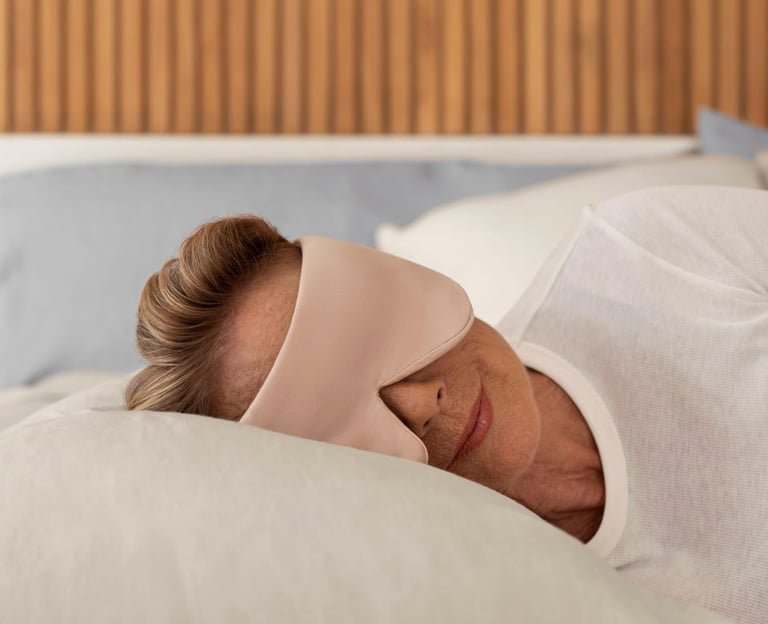 If you work from home, if you’re a parent with a brief window for rest, if you meditate or just need to reset between tasks, the mask creates an immediate threshold. You put it on, and your brain recognises: not working now. Not available. Not scrolling. Just here, in the dark, with weight on your face.